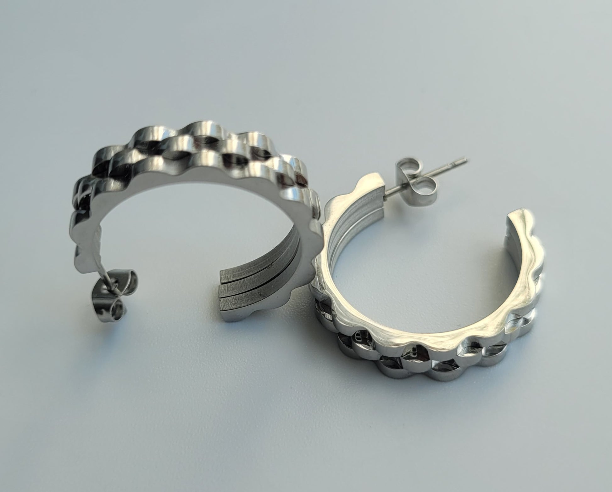These elegant, round earrings made of high-quality 316L stainless steel have a diameter of 2.5 cm and a width of 5 mm and are the perfect addition to any look. The timeless design and robust stainless steel make them a long-lasting, skin-friendly piece of jewelry that can be worn every day. Ideal for style-conscious women who value quality and elegance.