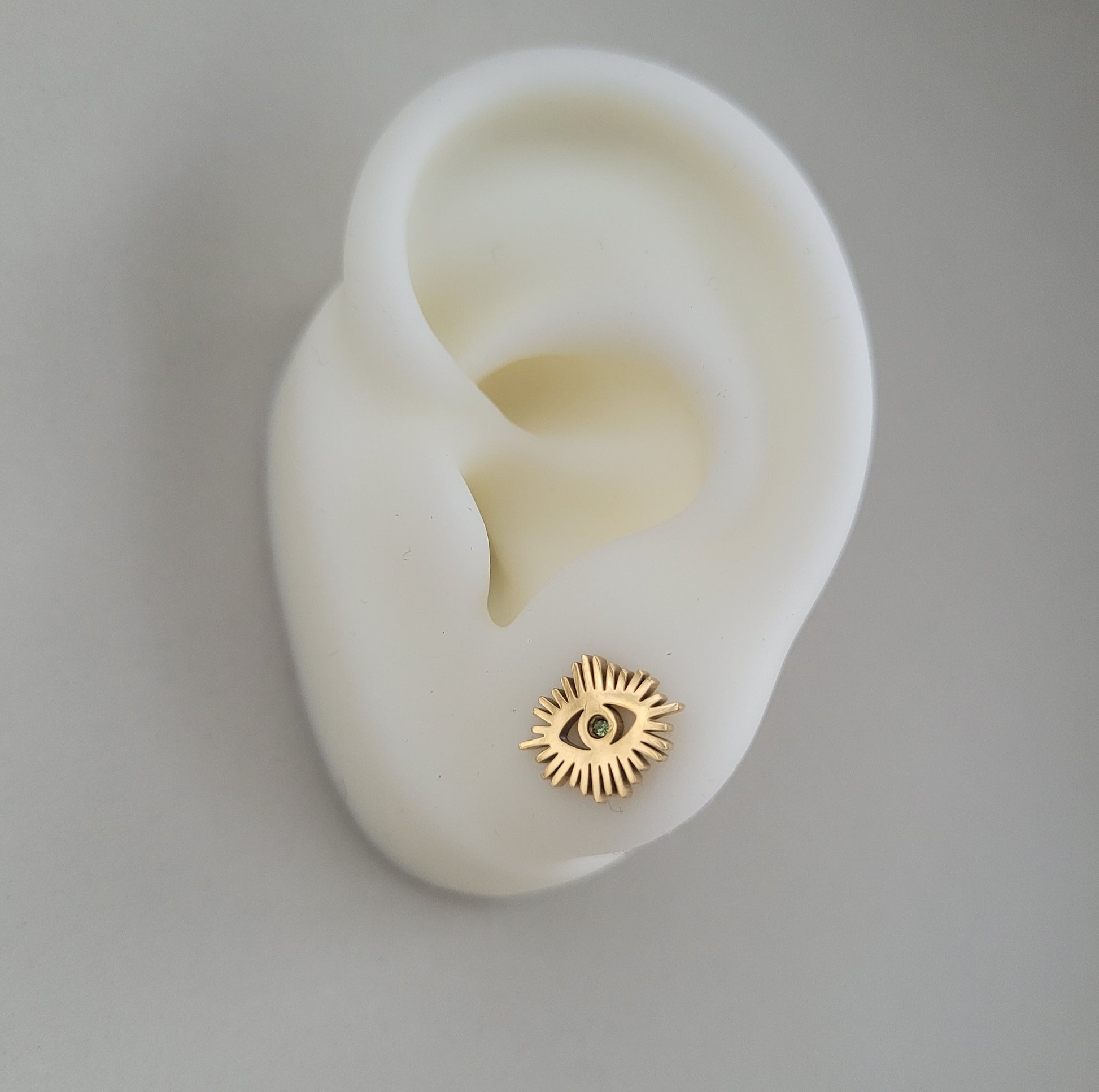Auffällige Ohrstecker in Sonnenstrahlen-Optik mit einem zentralen Eye-Motiv, verziert durch einen funkelnden Zirkoniastein. Gefertigt aus hochwertigem Edelstahl und mit einer 18 Karat Vergoldung veredelt, strahlen diese Ohrringe Eleganz und Symbolkraft aus. Perfekt für einen ausdrucksstarken Look mit besonderer Bedeutung.